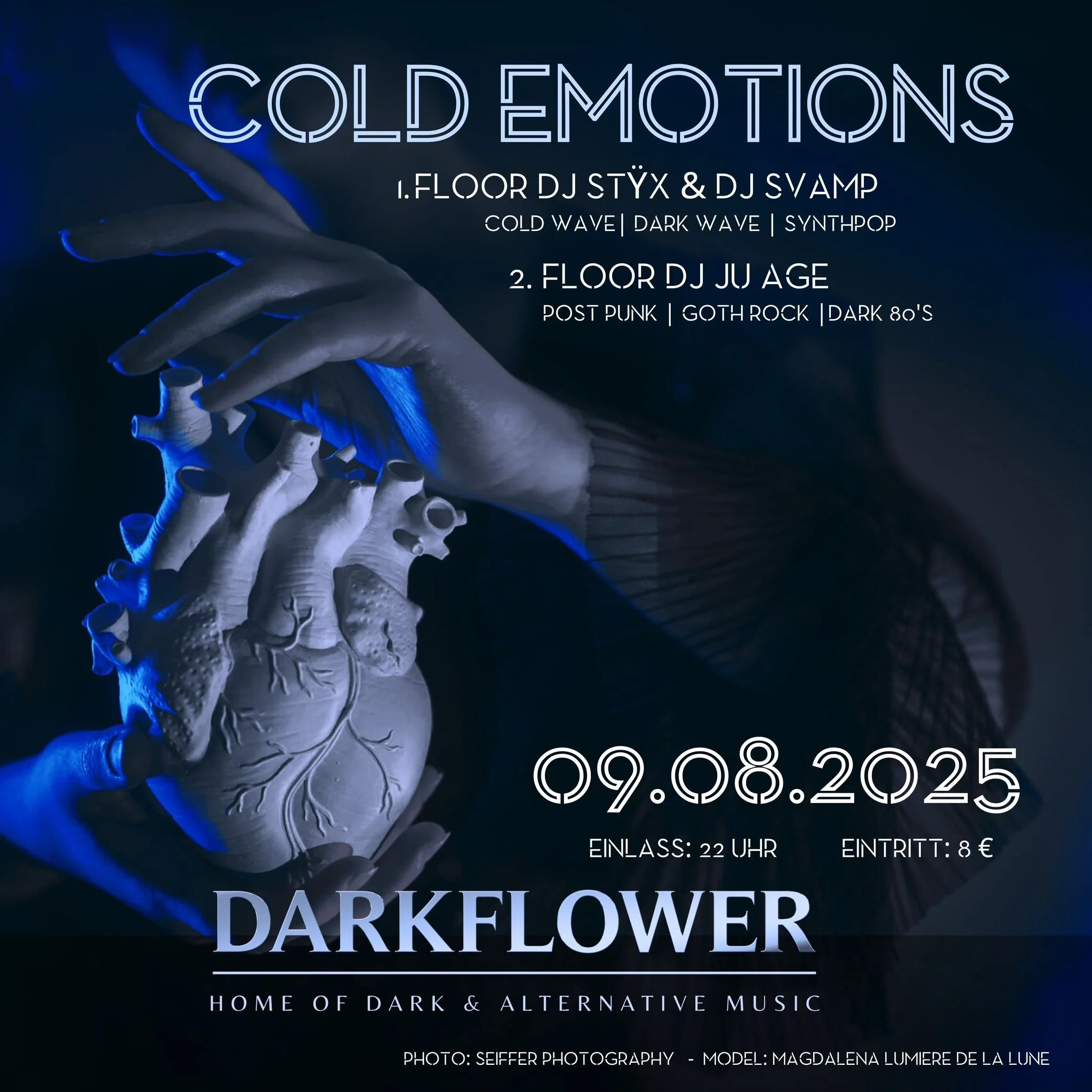 Nach dem gelungenen Auftakt freuen wir uns, euch zur zweiten Ausgabe unserer Veranstaltung "Cold Emotions" im Darkflower Leipzig willkommen zu heißen. Erlebt erneut eine musikalische Reise durch das Beste aus Coldwave, Post-Punk und Darkwave der letzten Jahre und Jahrzehnte – eine Nacht für all jene, die sich in düsteren Klangwelten zuhause fühlen.