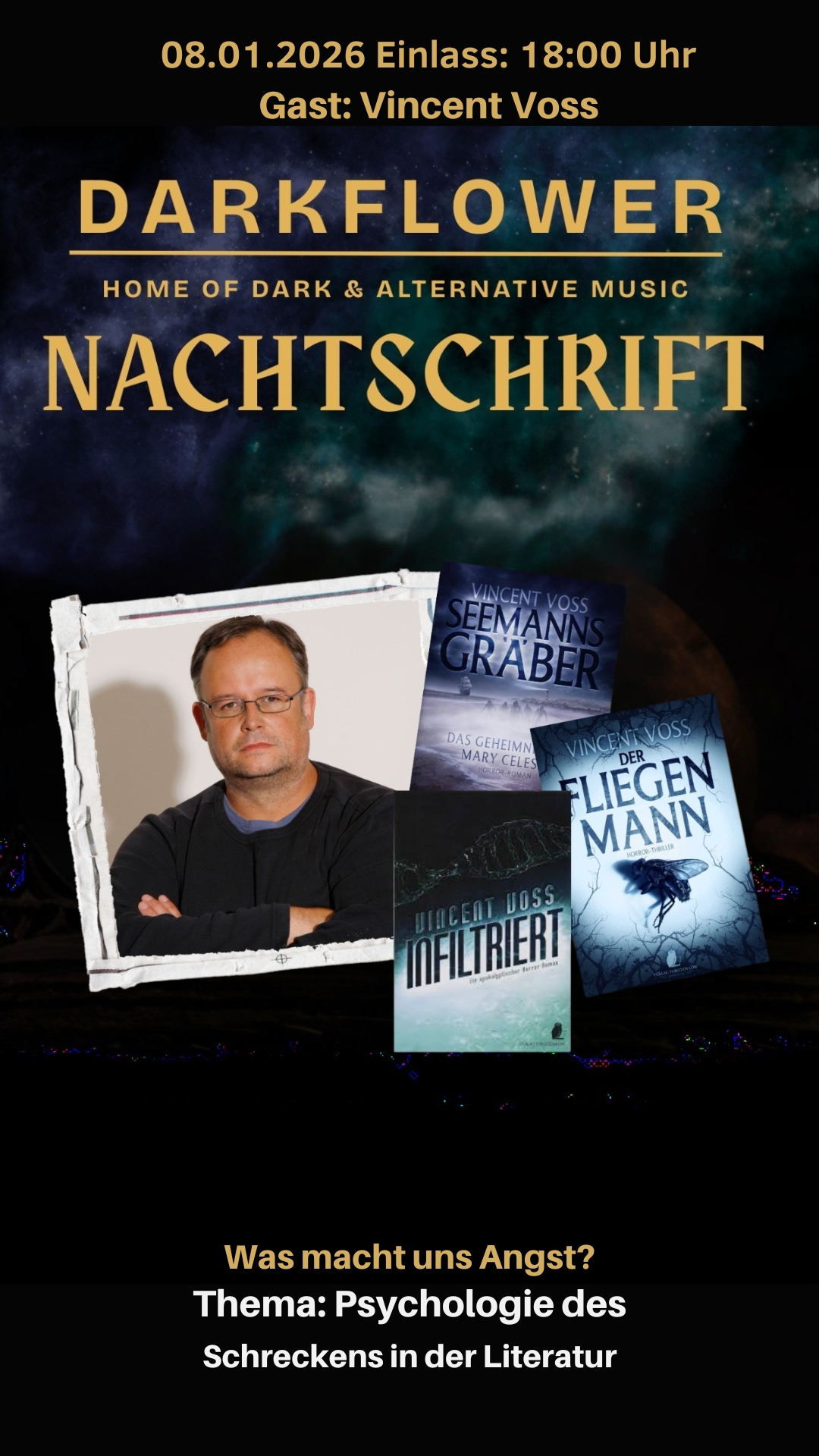 #Nachtschrift #VincentVoss #WasMachtUnsAngst #Horror #PsychologischerHorror #DarkFlowerLeipzig #LesungLeipzig #Phantastik #AngstUndFiktion