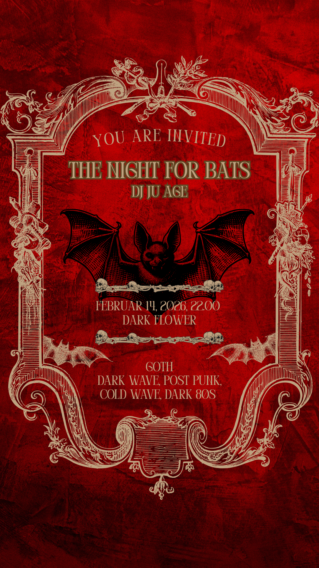 Für alle Fledermäuse und Wesen der Nacht bietet das Darkflower mit Dark 80s und Gothic Klassikern bis zur Musik der heutigen Protagonisten der Szene, ein angenehmes Kontrastprogramm. Für euch aus der Dunkelheit aufgetaucht ist DJ JU Age um heute Nacht euch eine dunkle Show zu präsentieren.