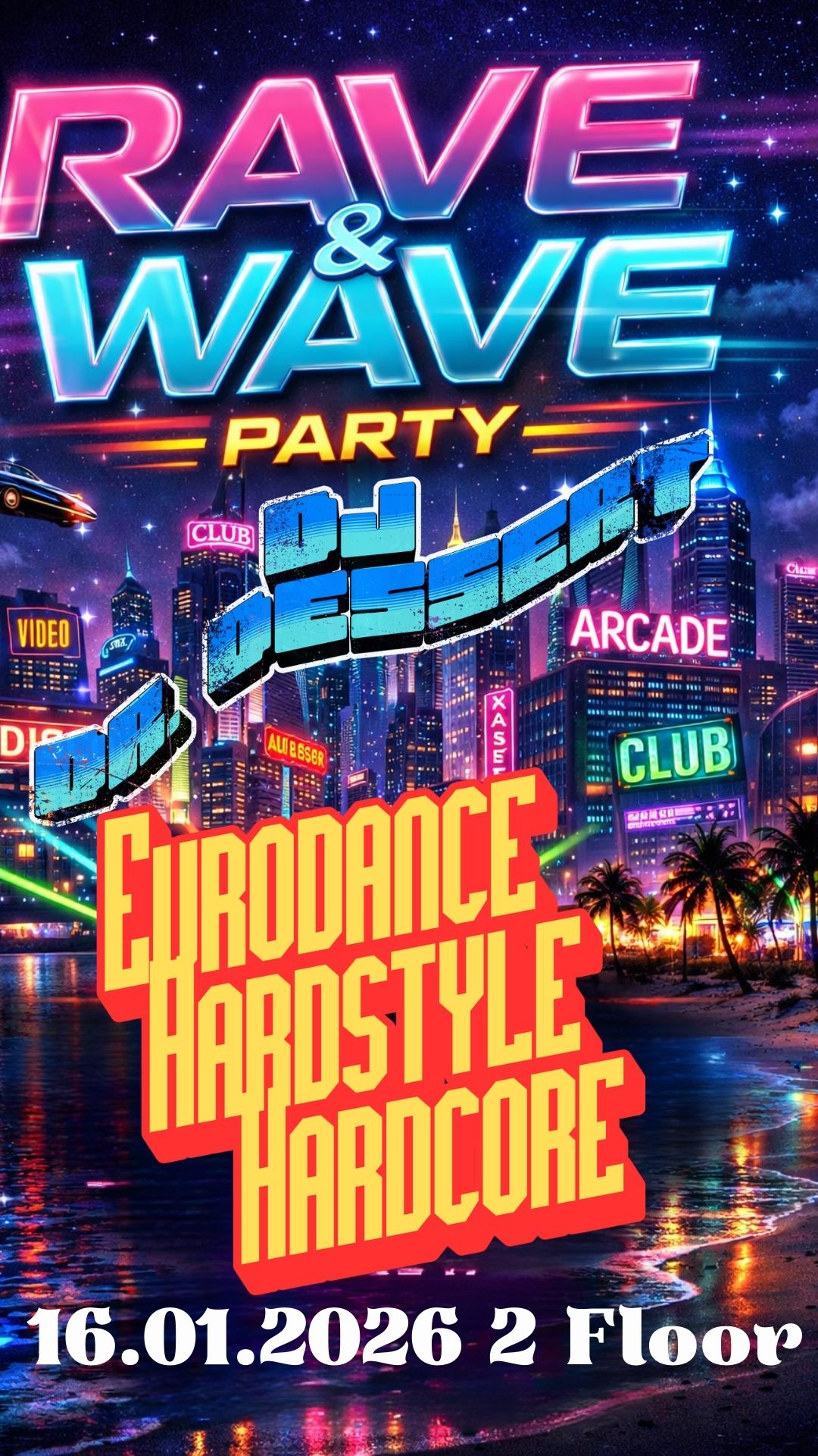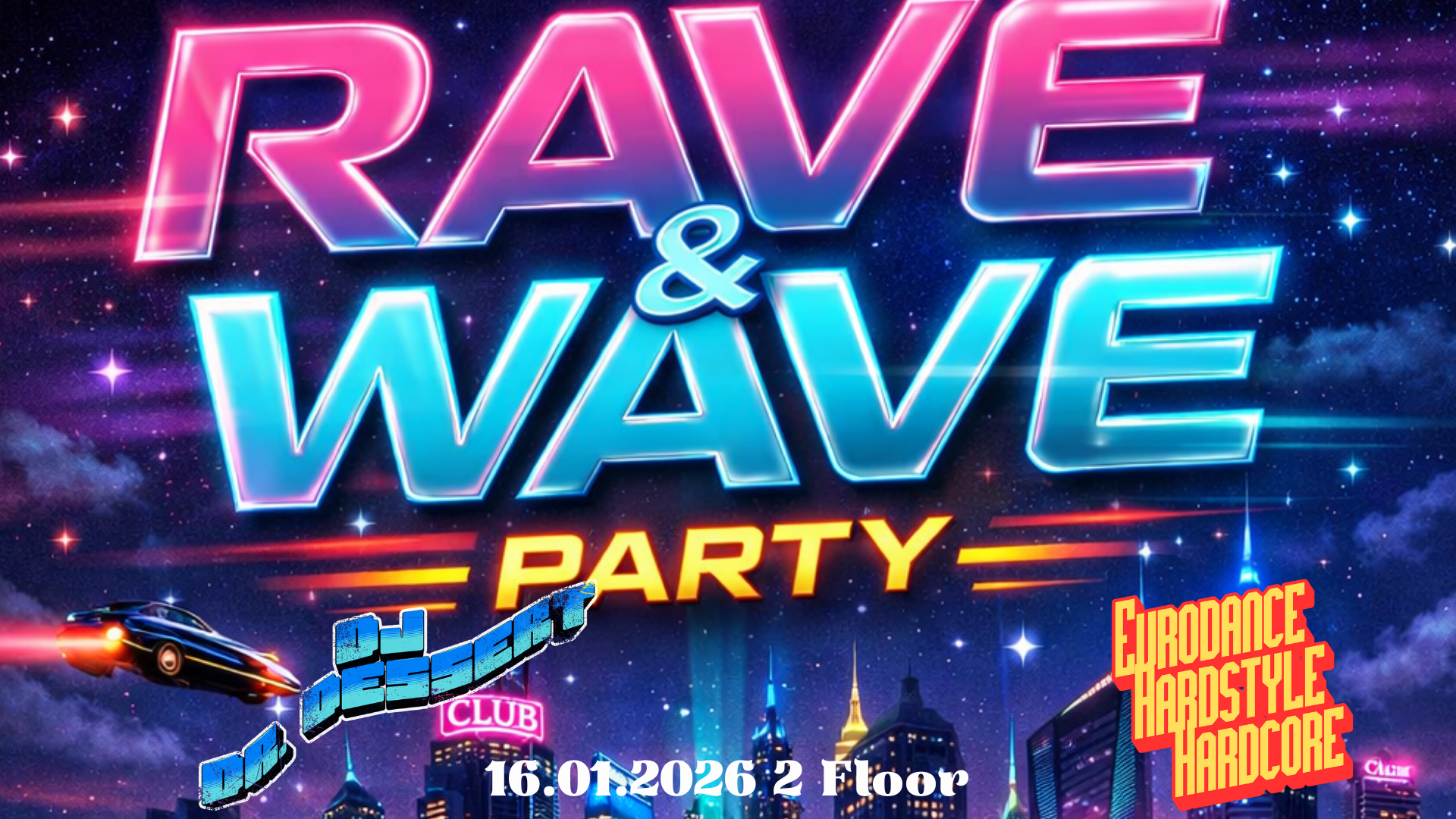 Tauche ein in eine neongetränkte Nacht voller Bass, Beats und grenzenloser Energie! Bei der Rave & Wave Party verschmelzen futuristische Rave-Vibes mit sommerlichem Wave-Feeling zu einer elektrisierenden Clubnacht.